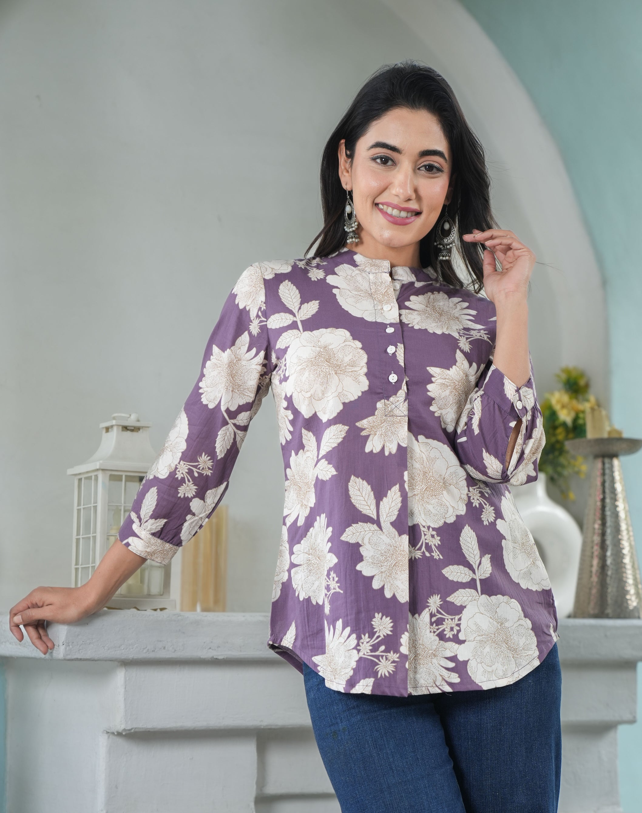 Embrace effortless elegance with our Lavender Bloom Floral Top for Women. Featuring a stunning blend of rich purple tones and soft, delicate florals, this top is the perfect combination of feminine charm and modern style. Crafted from light, breathable fabric, it offers all-day comfort while making a stylish statement. Whether you're dressing it up with a skirt for a special occasion or pairing it with jeans for a more laid-back look, this top adds a touch of floral beauty to any outfit. Fresh, vibrant, and versatile—make it your go-to piece for any occasion.